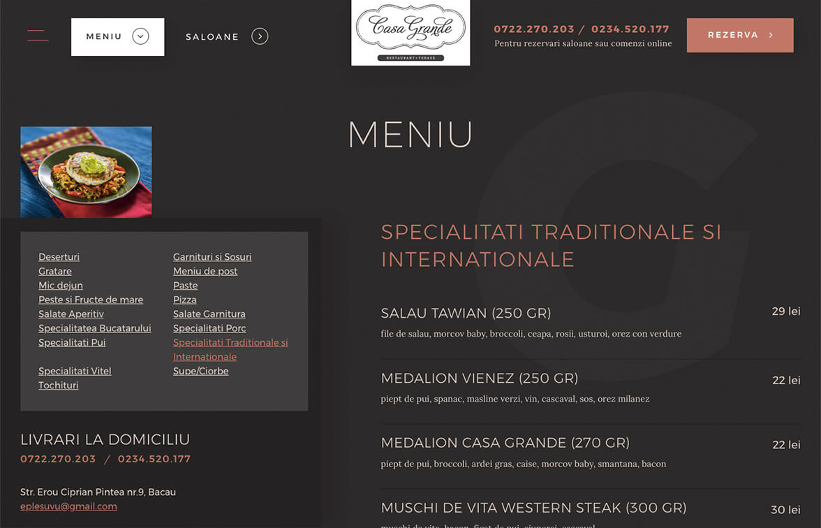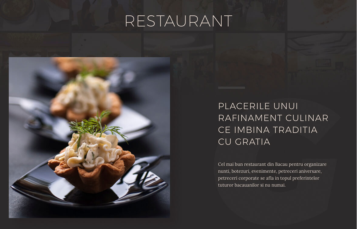 Final experience is a simple one, it requires elegance and refinement. Besides all of this we have, of course, chosen to include elements that will bring your appetite. The website is user-friendly, transforming each click into a nice navigation.