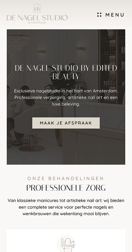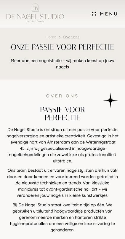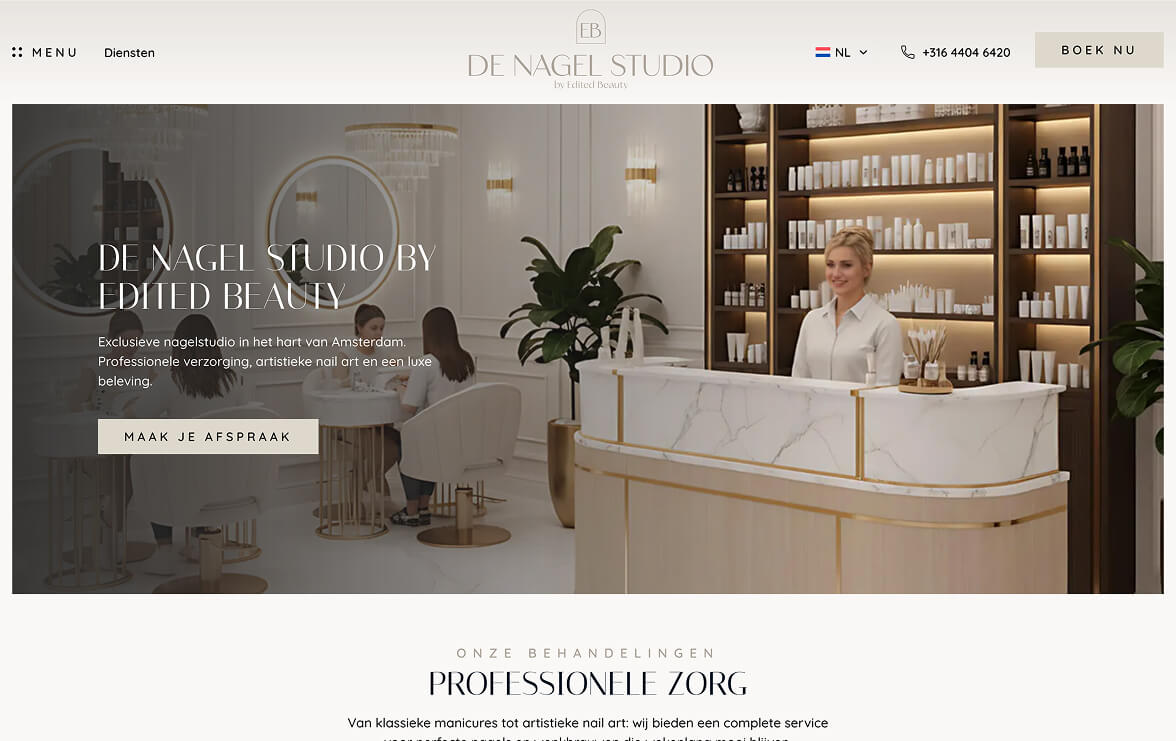 In developing the visual identity and online presence, we focused on minimalism, style and refinement, to reflect the premium character of the brand. We created a modern, airy and legible design, easy to use and perfectly integrated with the De Nagel Studio aesthetic. The simple and elegant logo becomes the central element of the visual identity, harmoniously completing the presentation page and conveying a visual balance that supports the brand’s values: quality, beauty and professionalism.