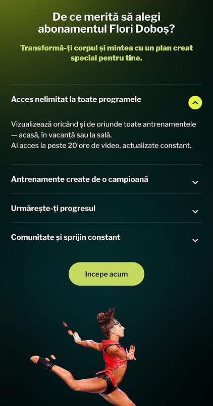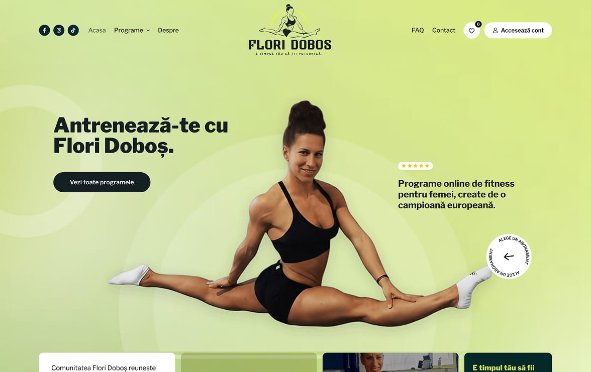 The first meeting with the Flori Dobos team was an inspiring and motivating experience, in which we discovered a community dedicated to real transformations through movement and discipline. We were impressed by the founder’s commitment to offering programs adapted to all levels, from beginner to advanced, and her desire to create an online space where results matter. This vision led us to create an online presence that reflects the energy, professionalism and continuous support that the team offers to its users.