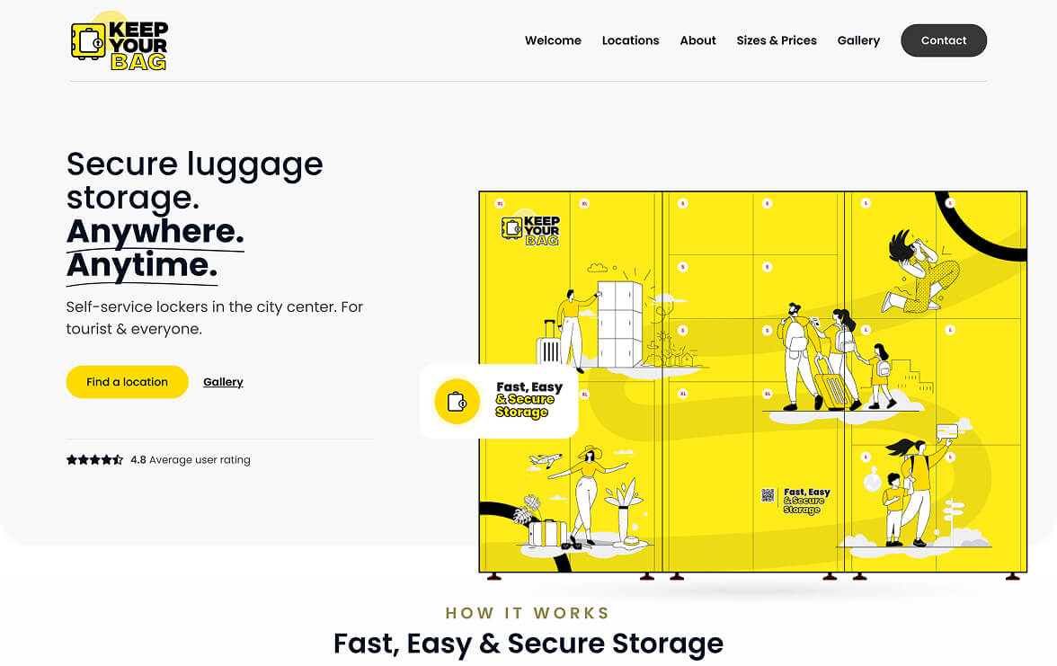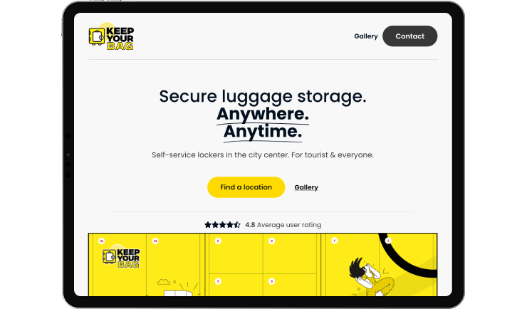 From the very beginning, we understood that the identity of keepyourbag should reflect simplicity, speed, security and technology. We created a modern, clear and user-oriented website that presents the entire process in three simple steps: find a locker, pay, continue your day without worries.