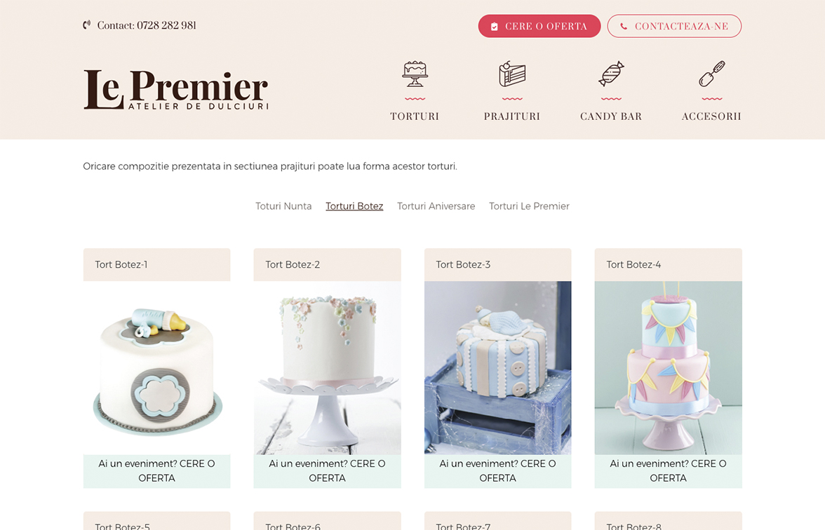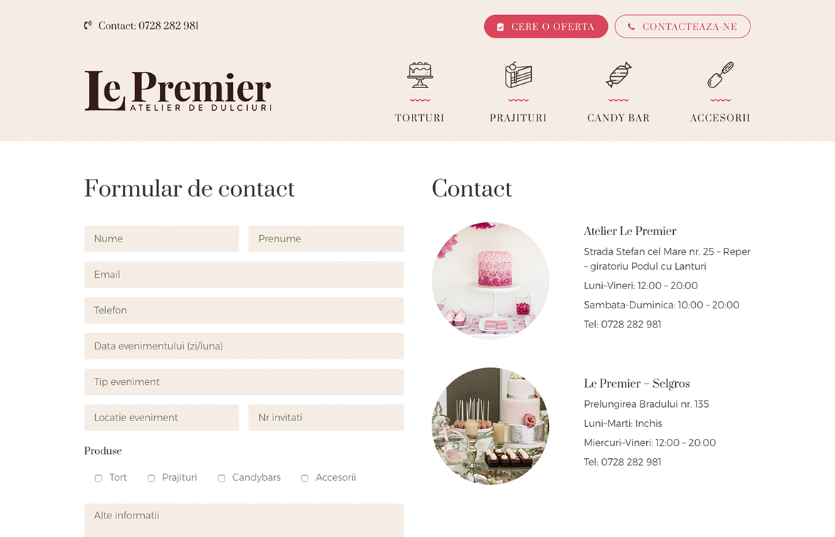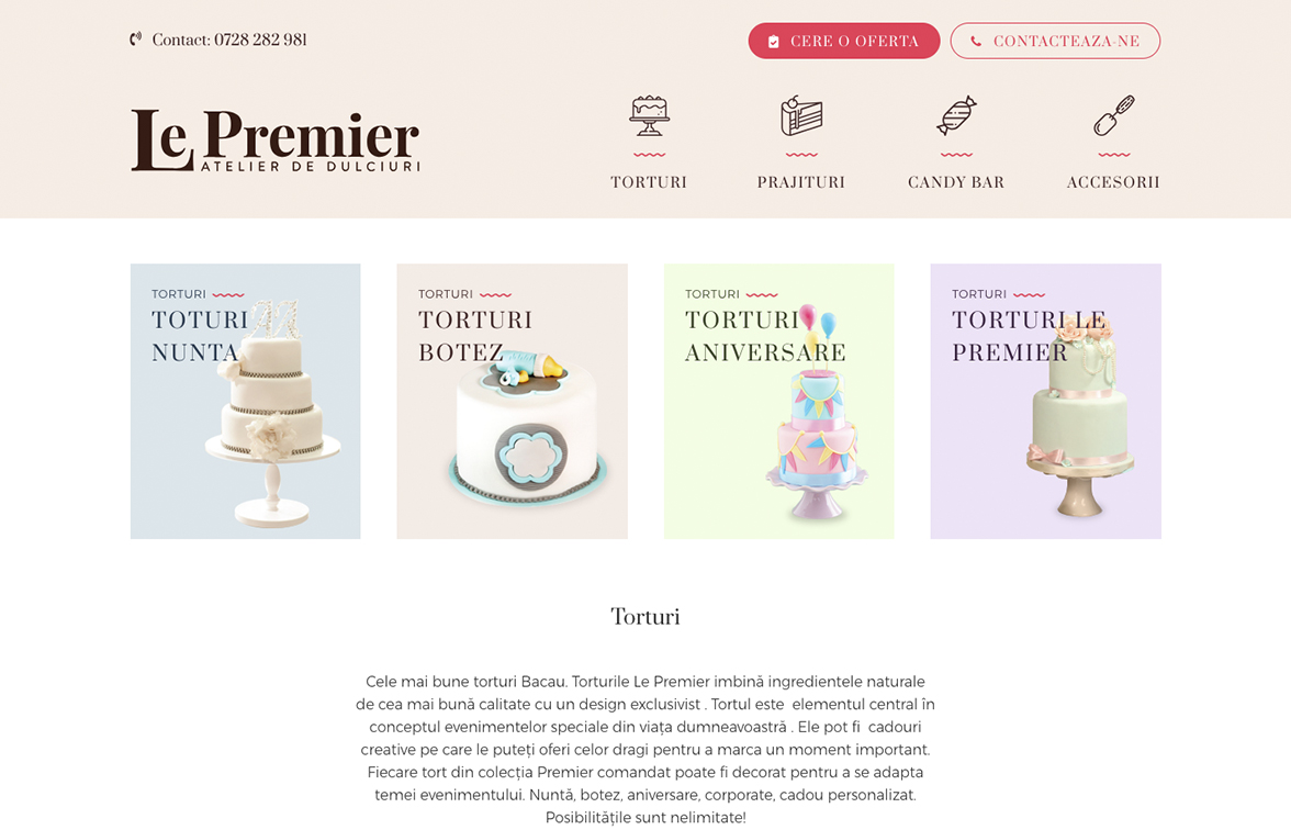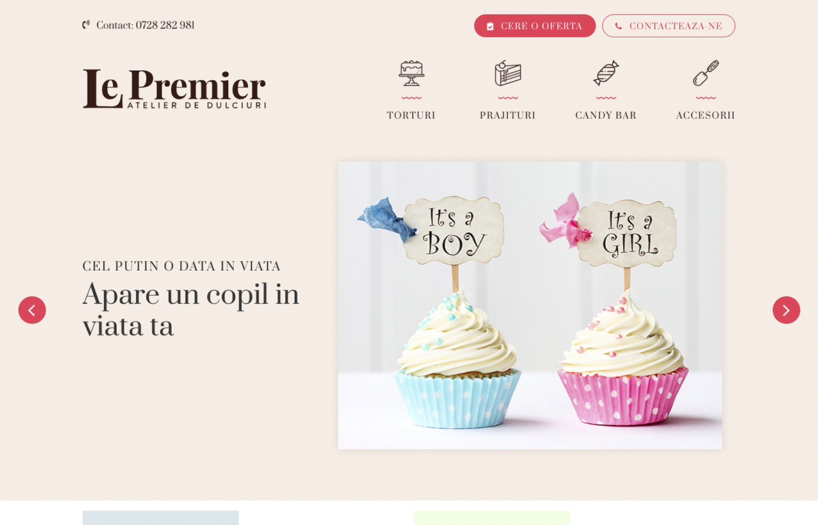 Le-Premier is a appreciated and well-known bakery from Bacau. The bakery is so popular because of the natural ingredients and the delicious flavors of the cakes. VeryCreative Agency created for Le-Premier a deliciously modern website that made the bakery one of the most popular businesses in Bacau.