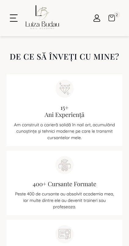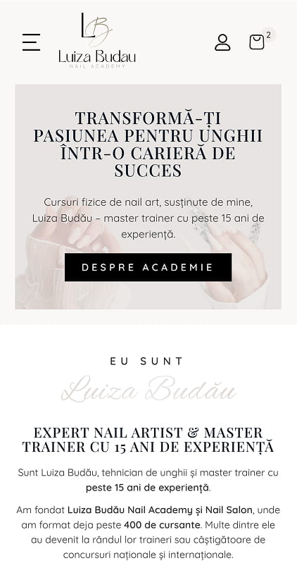 The first discussion with Luiza Budau was sincere, energetic and extremely motivating. We discovered a dedicated trainer, with a clear vision on nail art education and a genuine attachment to each student. The experience accumulated in over 15 years of activity, along with the results obtained by her students, showed us that this project is not just about courses, but about building confidence, discipline and a solid career. It was obvious from the beginning that the online presence had to reflect the professionalism, clarity and passion that define the academy.