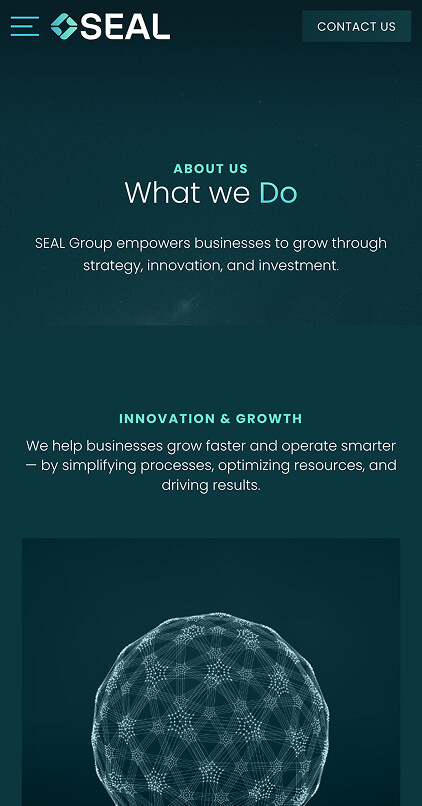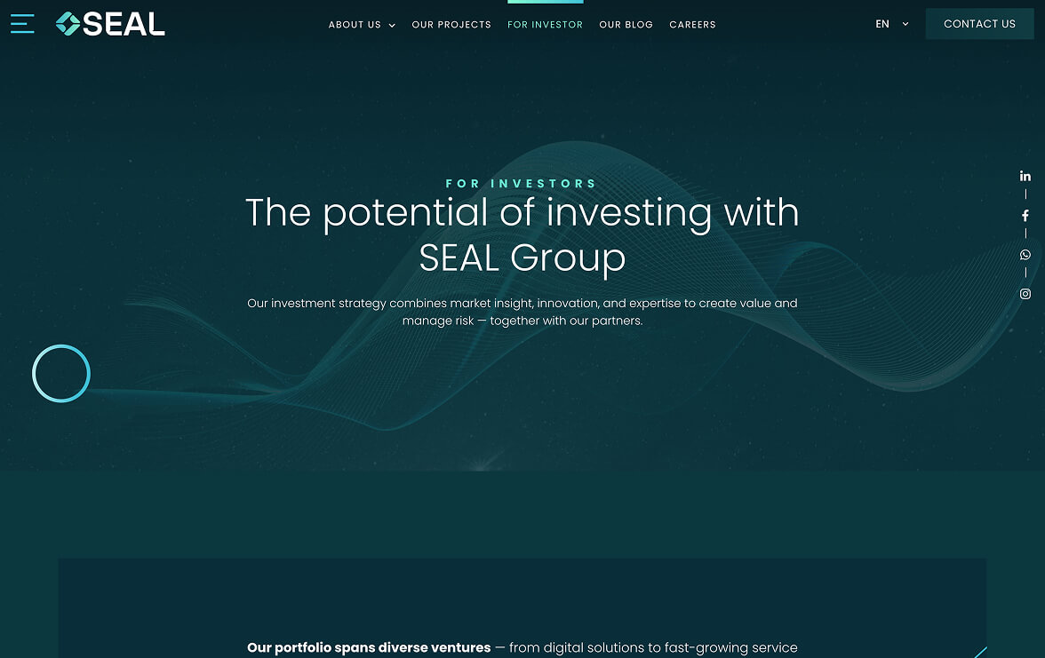 In developing the visual identity and online presence for SEAL Group, we aimed to reflect the professionalism, trust and innovative spirit of the brand. We created a modern, minimalist and legible design, easy to navigate on mobile, tablet or desktop, which highlights the company’s diversified portfolio and its core values: empowerment, innovation, trust and excellence. The website is designed to facilitate quick access to information about projects, services and global partnerships, highlighting SEAL’s role as a strategic partner in business development.