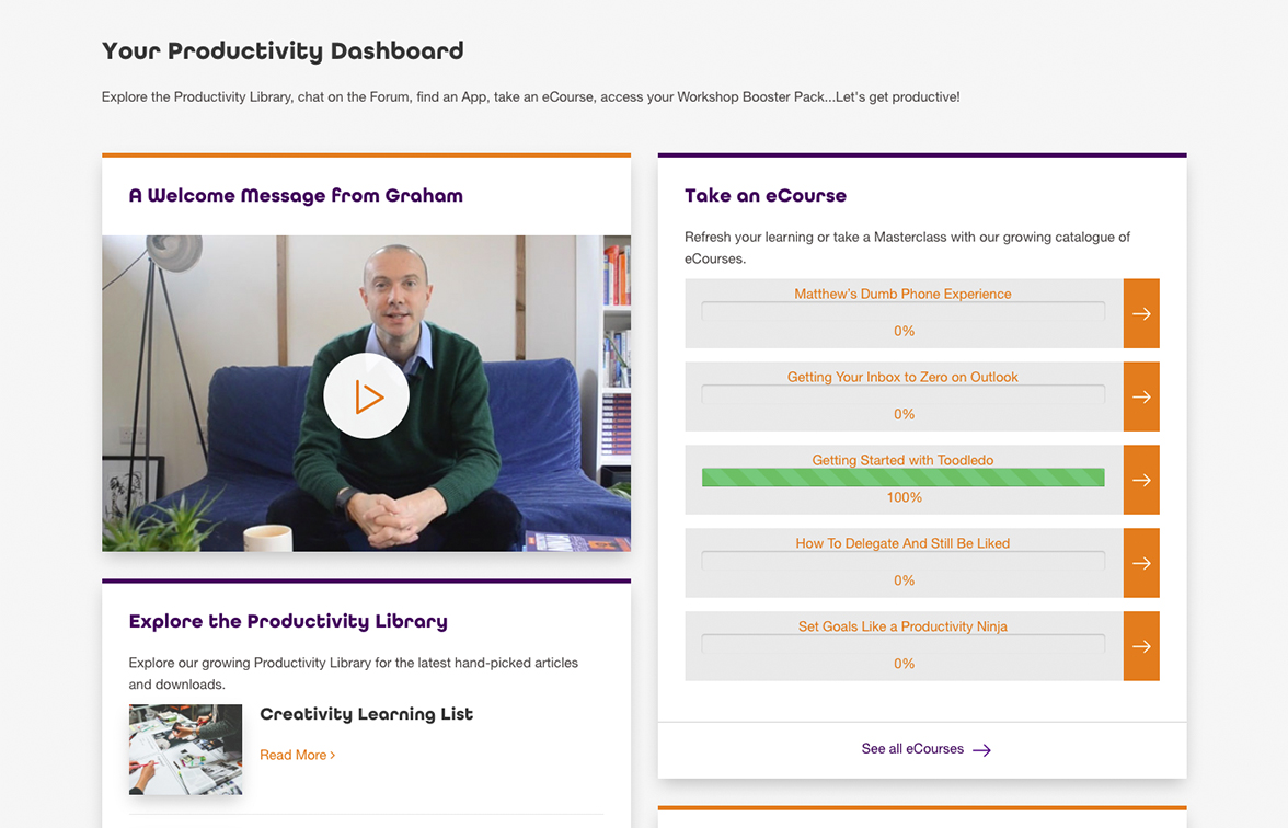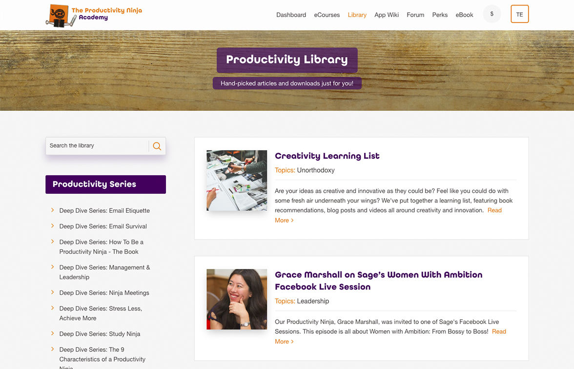 VeryCreative Agency created for Think Productive Academy an educative and super fun website. Think Productive Academy is an online platform where you can find different tutorials and courses for a more productive lifestyle.